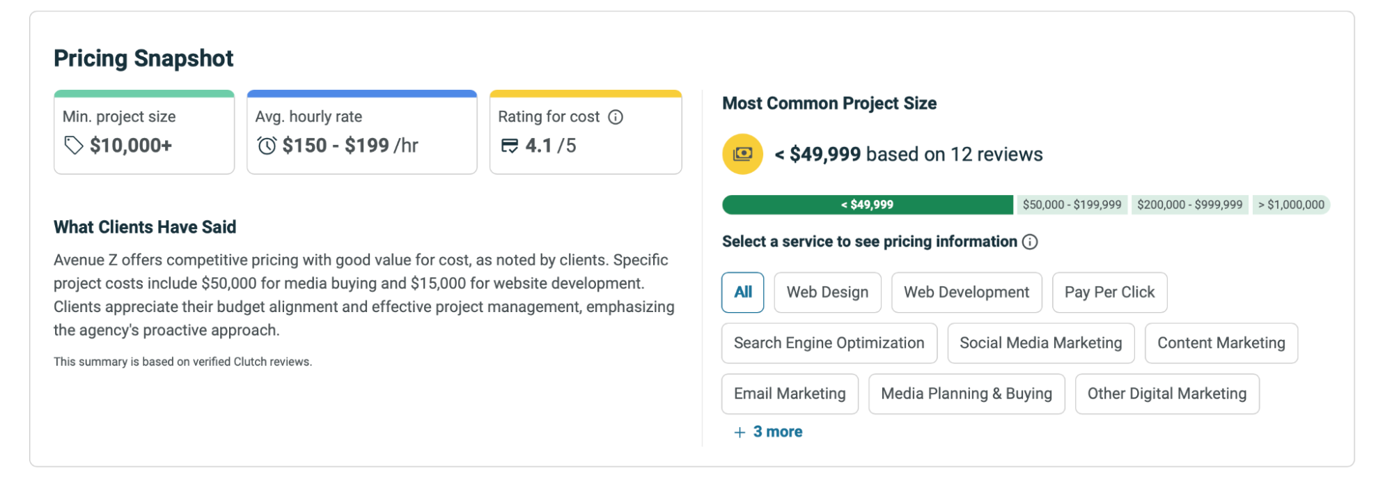 | Agency | Key Services | Best for | Min. Project Size (Clutch) |