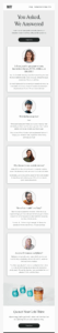 - They chose a diverse set of questions and included the headshots of the TikTok users who submitted them, making the email marketing campaign more interactive.