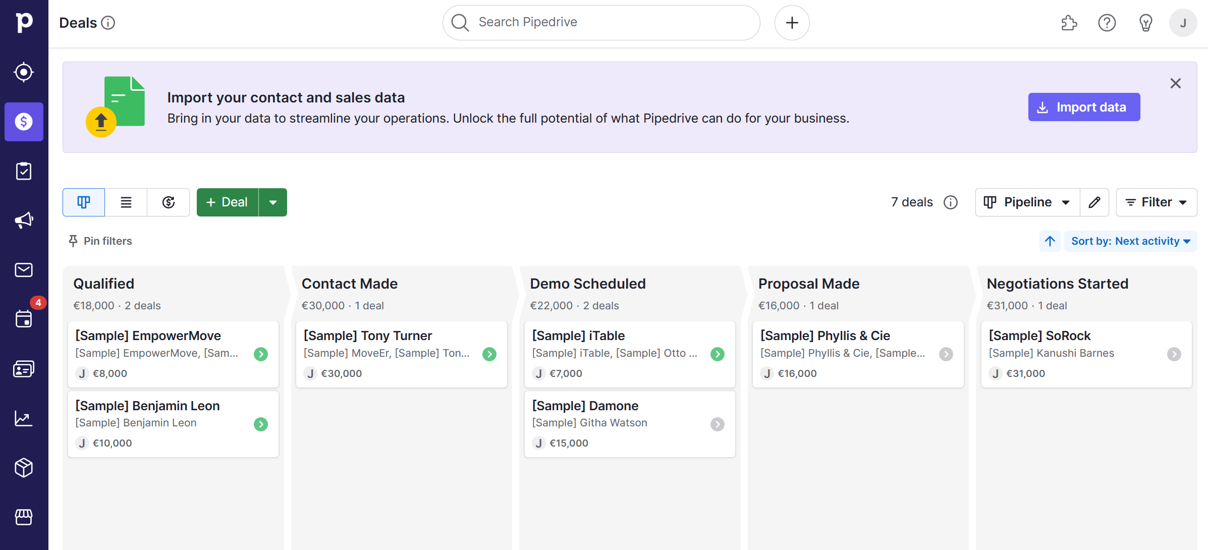 Pipedrive is a worthy HubSpot sales CRM competitor, sporting an array of features to increase your lead generation and turn prospects into business customers. The user-friendly interface is easy to navigate, allowing you to monitor your sales and leads without distracting you.