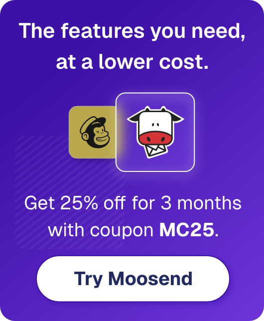 If you want to try a straightforward service that offers all essential features plus easy-to-implement marketing automation, create a free Moosend account and test the platform for a while. You’ll be amazed by its potential, plus you will save 45% of your marketing budget if you switch from Mailchimp.