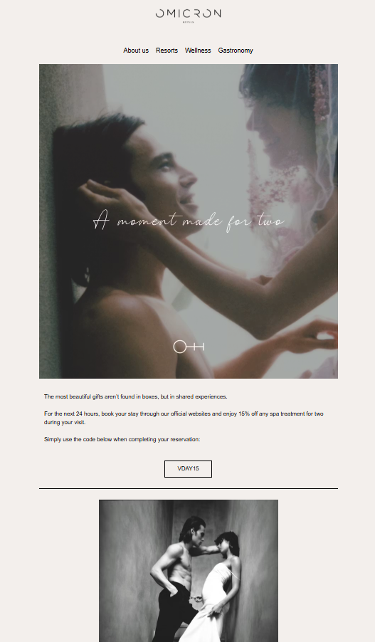 The headline, “A moment made for two,” added elegance without overpowering the visual. The layout also remained minimal and premium, aligning with luxury hospitality standards. Even the 15% spa offer felt integrated into the experience rather than a promotional addition.