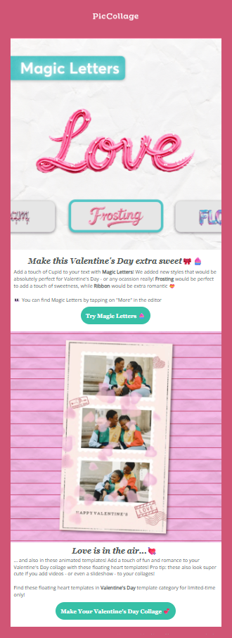 As one of the easiest photo and video editing apps designed to add magic to everyday memories, PicCollage built its Valentine’s campaign around creativity.